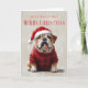 Festive Bulldog in Santa Hat and Cozy Sweater Christmas Greeting Card.
