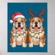 English Bulldog Christmas Santa Hat Reindeer Light Poster