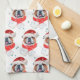 English Bulldog Dog Breed Christmas features a watercolor of an English Bulldog with a red Santa's Hat and a red Christmas scarf.