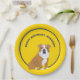 Throw a doggone good party with these personalised paper plates. They're perfect for birthday parties or other celebrations honouring dog lovers of all ages. They feature a realistic style illustration of an English bulldog in light brown and white set against a bright yellow background. Navy blue lettering spells out your custom message.