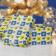 English Bulldog silhouette yellow, blue and black Grid Lines abstract pattern breed silhouette with alternating paw prints. Perfect for dog lovers on birthdays, special occasions, or just because, this paper is sure to wrap your gifts with love. Make unique memories and buy now for an unforgettable gift-giving experience.