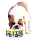 English Bulldog silhouette yellow, blue and black Grid Lines abstract pattern. The paw prints alternating with the dog silhouette makes a cool pattern. Personalise with your name or leave the breed. It also looks good with no writing.