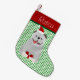 A precious pet deserves a personalised Christmas stocking! A green polka dot background and red trim adds festive colours to show off an adorable grey english bulldog with a cute little Santa hat. Easy to personalise! Original vector art by Night Owl's Menagerie, 2014.
