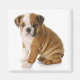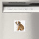 This fun canine magnet features an image of a chubby baby English Bulldog puppy dog highlighted against a creamy white background.