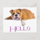English Bulldog Puppy Dog - Purple Hello Postcard