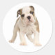 Bulldog love! These charming dog stickers feature a brown and white English Bulldog puppy dog highlighted against a crisp white background.