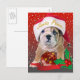 Adorable English Bulldog puppy santa is an fun Postcard for the Christmas holiday.
