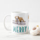 English Bulldog Puppy Photo Collage Dog Christmas Coffee Mug. This modern and simple dog photo Christmas mug comes with Merry Christmas text in trendy typography and a collage of three photos - insert your favourite dog or any other pet photos into the template. Great idea for a Christmas gift for your friends and family or a keepsake for your self.