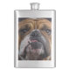 The product is a good size and came exactly as it was pictured. The lid is not attached to the flask, which could be dangerous on drunken nights... The print came out surprisingly well and looks very sharp. Would definitely recommend.