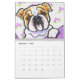 Cute wall calendar for your home, office, or gift for a dog-loving friend. Features a different original illustration by Andie of Off-Leash Art each month of the favourite English Bulldog dog breed.