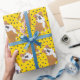 English Bulldogs Yellow and Blue Patterned Wrapping Paper