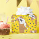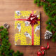 Wrap up gifts for dog lovers and dog owners in style with this patterned wrapping paper. This gift wrap features realistic style illustrations of English bulldogs against a bright yellow background accented by navy blue polka dots.