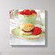 Further image in this series of the English Cream Tea: scones, clotted cream, jam and bowl of strawberries on vintage porcelain. Lovely for your kitchen or dining room or tea shop.
