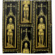 A brass tomb memorial, dating to around 1355, when John, Lord Cobham was buried. Lord Cobham wears armour, including chain mail, resting his feet on a disgruntled lion. These memorials became popular in Victorian times and later, when rubbings would be taken and displayed.