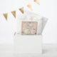 Adorable and editable wedding design gift bag, beautifully elegant in vintage colours of beige, light pink and dove blue. My English Rose Garden floral wedding invitation features a background of watercolor rose flowers and blue butterflies under a light pink translucent frame so you can see the wonderful bunch of vintage roses.