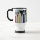 This lovely bright travel mug has a photo of traditional English, wooden, colourful beach huts at the Devon seaside. It can be personalised with your name. The photograph was taken in Paignton, Devon, England