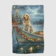 Set sail into the magic of the holiday season with this beautifully detailed illustration, showcasing a proud dog sitting in a festively decorated boat, gliding across a serene Christmas lake. The twinkling lights from nearby pine trees reflect off the water, casting a warm, festive glow that enhances the cosy ambiance. Ornaments dangle from the boat's sides, while glowing lanterns light the way, creating a scene that captures the true essence of Christmas warmth and joy. This nostalgic artwork brings a touch of holiday magic to any space, perfect for those who cherish the spirit of the season.