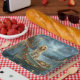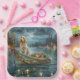 Set sail into the magic of the holiday season with this beautifully detailed illustration, showcasing a proud dog sitting in a festively decorated boat, gliding across a serene Christmas lake. The twinkling lights from nearby pine trees reflect off the water, casting a warm, festive glow that enhances the cosy ambiance. Ornaments dangle from the boat's sides, while glowing lanterns light the way, creating a scene that captures the true essence of Christmas warmth and joy. This nostalgic artwork brings a touch of holiday magic to any space, perfect for those who cherish the spirit of the season.