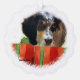 Great Christmas gifts for the English Setter lover. Blue Belton (tri-colour) English Setter puppy resting on Christmas presents.