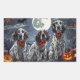 Unleash the spooky spirit with this eerie Halloween design featuring a pack of dogs under a dark, moonlit sky, surrounded by flying bats and glowing pumpkins. Perfect for those who love a touch of frightful fun with their furry friends!