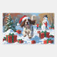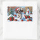 English Setter Running in Snow with Christmas Hat Rectangular Sticker