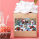 A graceful English Setter runs joyfully through the snowy winter scene, wearing a festive red Christmas hat. This elegant design highlights the breed’s speckled coat, gentle personality, and lively spirit while capturing the warmth and magic of the holiday season. A heartwarming winter moment full of festive charm.