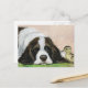 This postcard features a reproduction of my original oil painting of an English Springer Spaniel and duckling