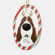 Humourous big nose English Springer Spaniel Christmas ornament. Springer is in antlers and holding mistletoe in his mouth.