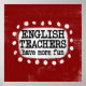 "English Teachers Have More Fun" is a cute text design in red with black text, along with a white accent shape and white textured whimsical dots surrounding it.