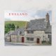 A beautiful photograph of stone cottages in an English village printed on a postcard.