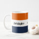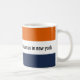 A classic two tone design of orange and blue blocks of colour with a fun quote in between. The quote reads - an Englishman in New York - and it's personalised which can be easily changed.