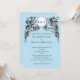 Adapted from an eighteenth century title page, a fancy engraved design featuring roses, poppies, a flying bird, and cute owl, all to announce your happy day. An elegant engraved French rose highlights the back of this design.