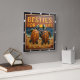 This colorful square wall clock features a highly dimensional illustration of two sea turtles side-by-side. The entire design is rendered in bright orange, blue, and tan tones, strongly suggesting a carved relief or Engraved Wood Look. The turtles have highly detailed, textured shells in orange and green/blue heads, and are positioned on a textured sandy beach. Behind them is a vivid blue ocean and a large sunset with an orange sky. The large, three-dimensional embossed text "BESTIES FOR LIFE" is carved in two lines across the top in orange and yellow. The clock face features a simple clock face border with large, white, numbered tick marks (1 to 12) integrated into the frame. The artwork is surrounded by a dark, textured decorative border that resembles a black wood frame.