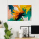 Strong, gestural brushstrokes and splashes of paint give the piece a raw, expressive character. The contrast between light and dark elements creates tension and depth, while the vibrant palette brings warmth, optimism, and creative intensity. Though inspired by floral forms, the artwork remains fully abstract, allowing the viewer to interpret it as a symbol of growth, freedom, energy, or transformation.