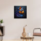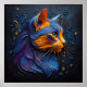 A captivating portrait capturing the beauty of a cat's head looking in style. This abstract artwork features embossed lines in hues of blue, orange, and purple, set against a dark shady blue background. Discover the mystery of this artful feline gaze, adorned with subtle embossed colour elements.