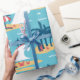 Enjoy Blue Surfing Cartoon Illustration Wrapping Paper
