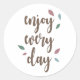 Enjoy every day, calligrpahy motivational phrase, boho feather falling from the sky.