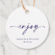 Add a charming final touch to your wedding favours with this elegant round tag featuring the word “enjoy” in graceful navy script on a crisp white background. Personalised with the couple’s names and special date, this design blends simplicity with romance. The reverse side is adorned with a soft blue floral pattern, bringing a delicate and refined look. Perfect for treat boxes, thank-you gifts, or dessert favours at weddings, bridal showers, and engagement celebrations.