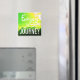 This magnet features a photograph taken of the mountains at Glacier National Park in Montana edited for a colourful yellow sky. The magnet has the words "Enjoy the Journey!"