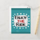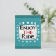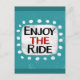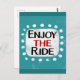 "Enjoy The Ride" is a cute inspirational or motivational quote with a white accent shape surrounded by white textured whimsical dots.