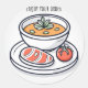 Bowl of soup with vegetables Enjoy your orders stickers. Generative content