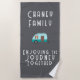 Whether this is your first cousins camp or you’re wanting to elevate a long-standing tradition, this customisable design will add fun to your gathering with a one-of-kind retro camper in teal and orange on a grey background. Personalise it with your own family name.