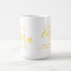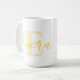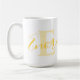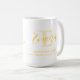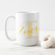 Simple text name meaning Enora mug in white and shades of yellow. Reads Beautiful light. Smart thinking, shining with honour, or you can personalise with your own name and name meaning. Other colours and name meanings are available. Design and wording by www.mylittleeden.com