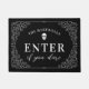 Greet your guests with this spooky-chic Halloween doormat! Design features a black background with your name curved across the top, and "Enter if you dare" beneath. A filigree border and a skeleton accent complete this spooky Halloween design.