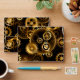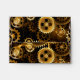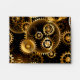 Seamless, metal, brass, gold gears on rusty dark background. Steampunk style.