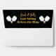 Pickleball bridal shower, engagement, bachelorette party or pickleball activity over the weekend invitation to personalise. Classic black, cream, and gold glitter envelopes with Last Swing Before the Ring on the back flap with gold and cream pickleball paddles. Envelopes have a gold interior. Please contact me to customise with your wedding colours.
