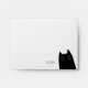 Envelope with an adorable curious black cat popping up from the corner, saying "hi, hello".
