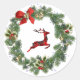 Simple watercolor Christmas botanical wreath with red plaid or tartan reindeer jumping inside. Stylish envelope seal for all your holiday stationery. There are 20 stickers per sheet on this product.