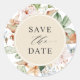 Save the Date envelope seal coordinating our "Earthy Blooms" save the date cards, with beautiful watercolor floral in a mixture of beige, dusty rose, blush, terracotta, rust, orange, green and a hint of blue hues. Delicate beige terracotta watercolor stains cascading behind floral detail. Centre in buttery beige showcasing "Save the Date" phrase in a mixture of modern calligraphy and block typography. Part of our "Earthy Blooms in Buttery Beige and Terracotta" collection, with a variety of coordinating save the date cards available.