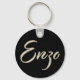 Ein sehr schöner edler personalisierter Button Schlüsselanhänger im whitegold Lettering Look auf schwarz für Enzo.